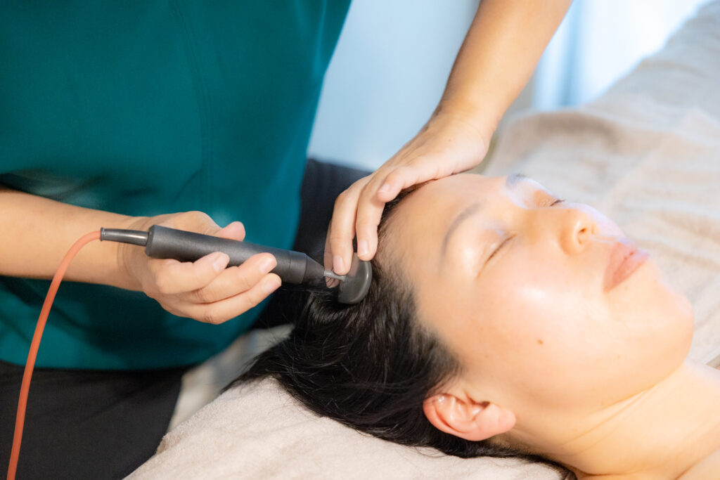 頭皮・顔・デコルテにインディバとアロママッサージを行うリフトアップ・小顔を目的とした60~80分メニュー